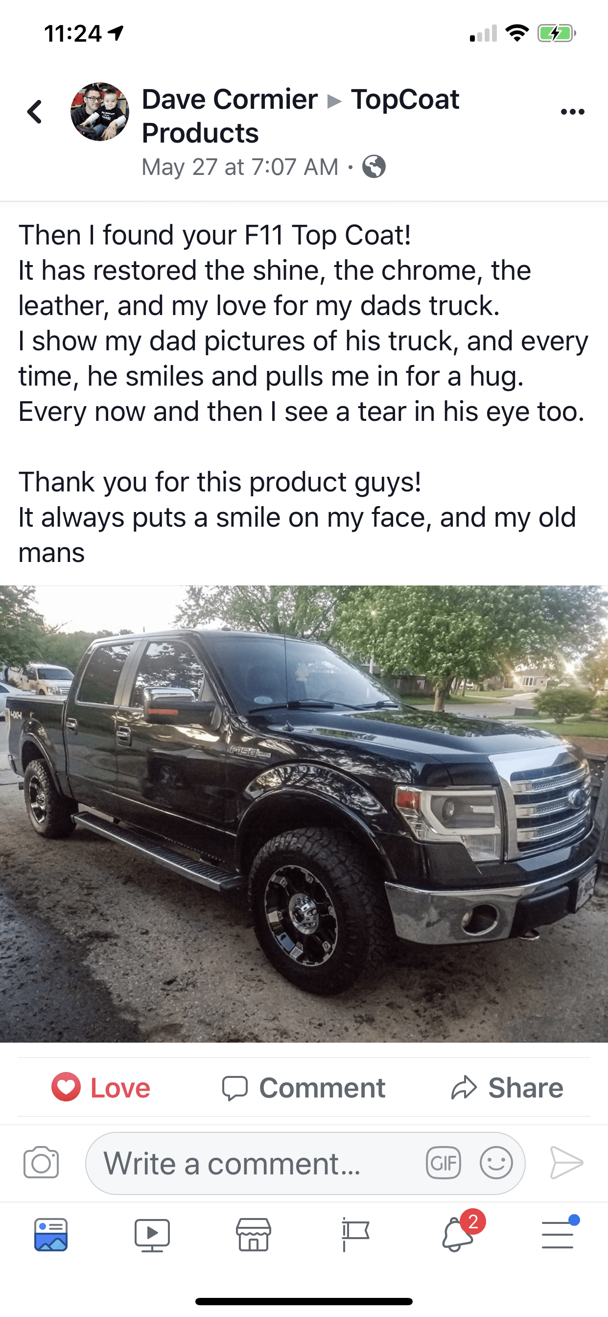 Watch Scott, founder of TopCoat®, apply F11PRO® directly to his dirty 2017 F-350 after a long road trip from Florida to Sturgis. See first hand how he easily cleans this beautiful truck back to new condition simply by wiping it down with F11PRO, without using water or soap. No scuffing, no scratches, just a flawless black finish that looks like a mirror. Break the traditional ways of detailing with a coating that changes how we detail forever, saving time, money, and the hassle of multiple products, soaps, cleaners, hoses, cannon sprayers and more.