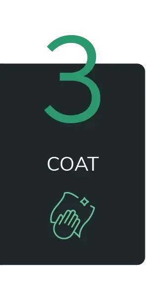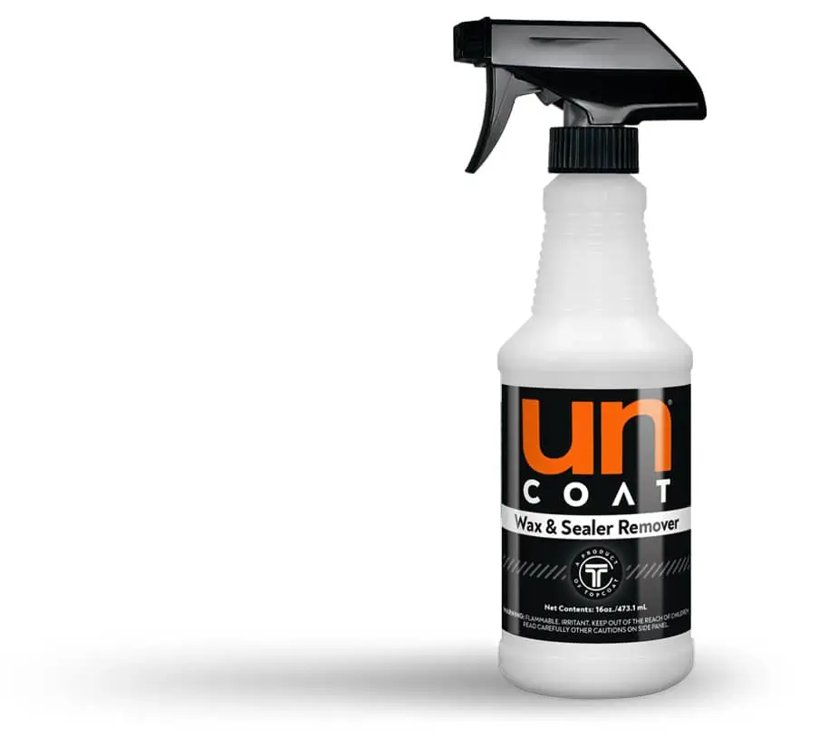 Pour UnCoat® into a TopCoat® applicator pad until a section of the pad is saturated with product. Apply directly to the paint or surface, evenly wiping back & forth, or moving the pad in a circular motion to remove wax or sealants. Work in a 2’ x 2’ area or a half panel at a time, wiping until the surface is no longer smooth or hydrophobic. It may take several attempts for proper removal. Once finished, wipe down the area with a clean and dry microfiber towel.